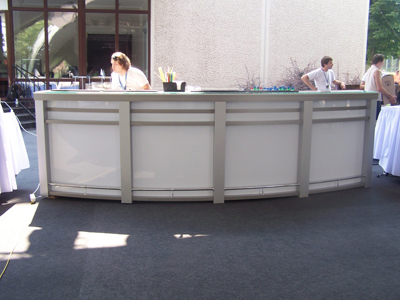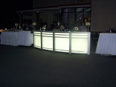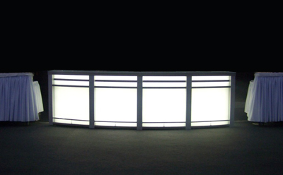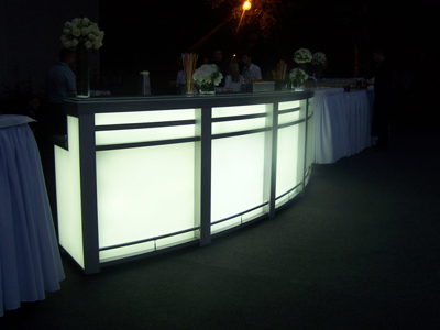 Производим барные стойки по базовым моделям, а также, по эксклюзивным проектам. Стационарная светящаяся радиусная барная стойка с использованием светодиодных (LED) технологий. (артикул BAR 0015 LED)