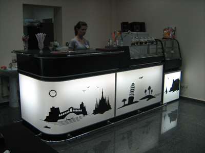 ![]() Представляем проект барной стойки, в котором мы использовали современный подход к светотехническому решению. В данной барной стойке вмонтированы светодиодные линейки, которые обеспечивают независимое свечение конструкции в интерьере. Барная стойка выполнена из современных материалов и имеет сложную геометрическую радиусную форму.