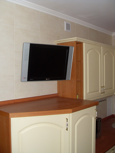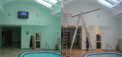 Плазменная панель скрывается за раздвижным проекционным экраном.