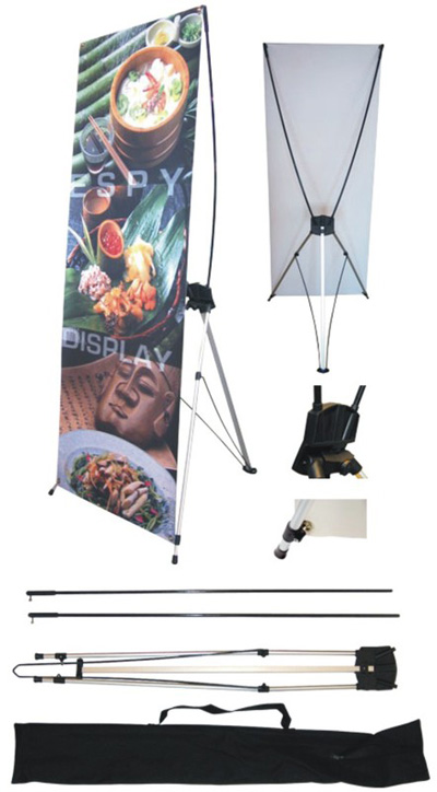 Банерный Х-стенд состоит из раскладного алюминиевого каркаса и