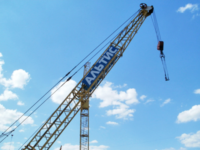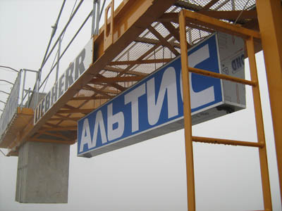 Монтаж мобильного лайтбокса на стрелу башенного крана Liebherr.