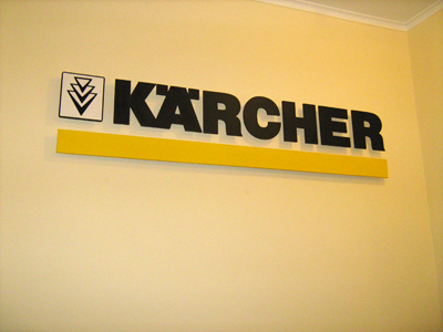 ![]() ![]() ![]() * * * Интерьерный логотип в отделе продаж оборудования "Karcher": Фрезеровка цветного ПВХ.